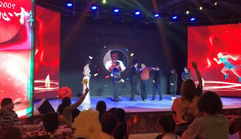 支持互动游戏,手机摇一摇,争夺名次,大屏幕投放出参与者争夺名次的进度,