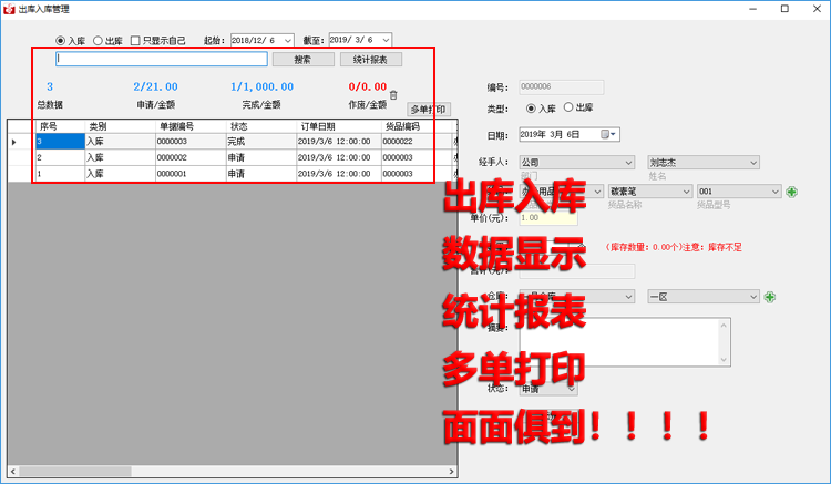 支持入库出库的多单打印,出库10项勾选即可一次性生成单据,不遗忘不丢失好整理。