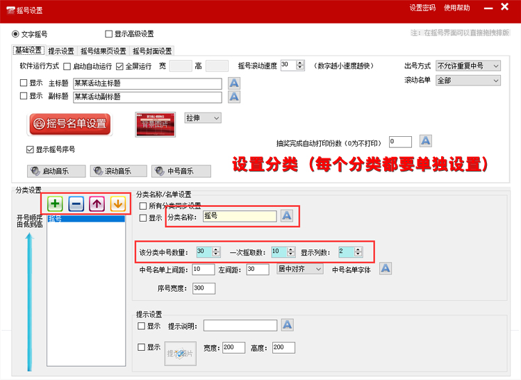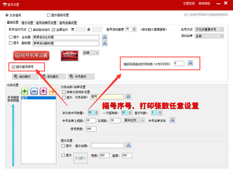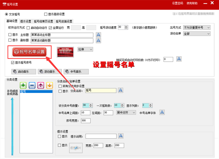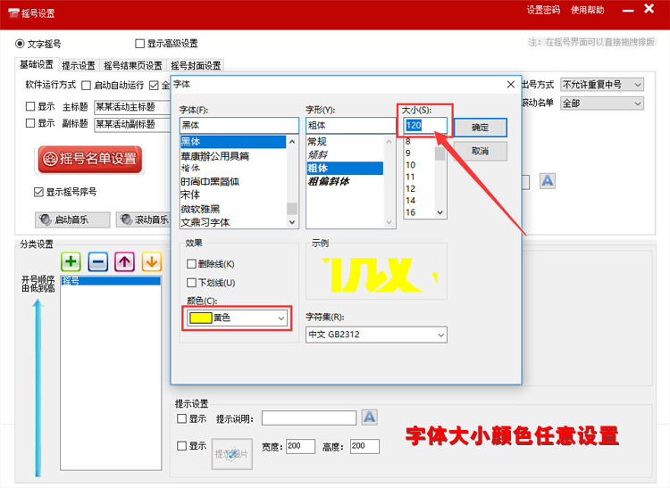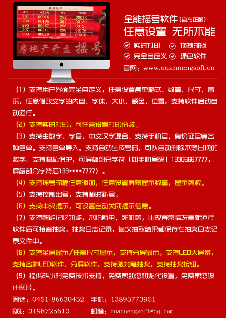 支持用户界面完全自定义,任意设置名单格式、数量、尺寸、音乐,任意修改文字的内容、字体、大小、颜色、位置;支持软件启动自动运行。