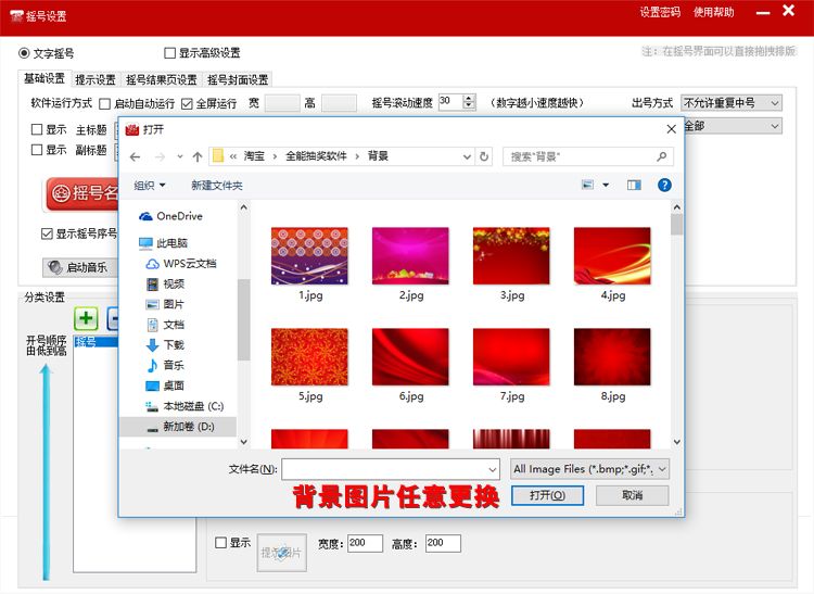 支持自定义界面,界面所有部件(标题、中奖人等)的字体大小、文字、颜色、位置、背景等都可手动或自动调整;
