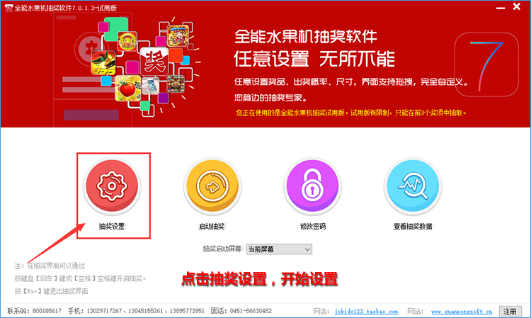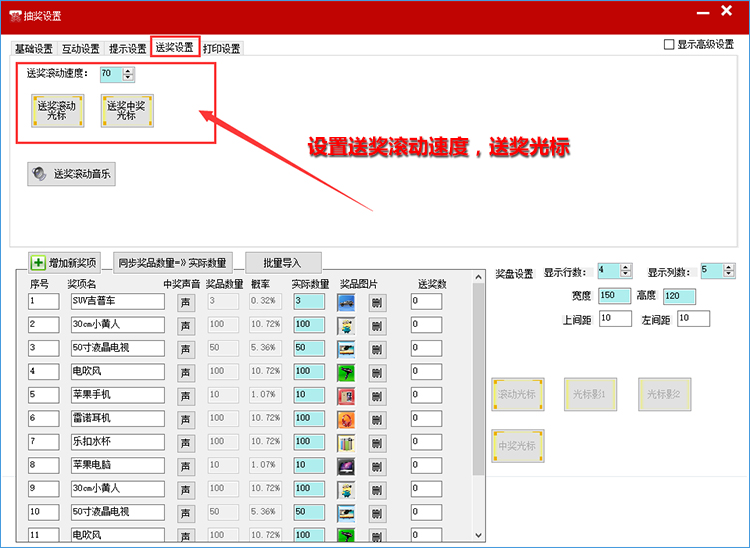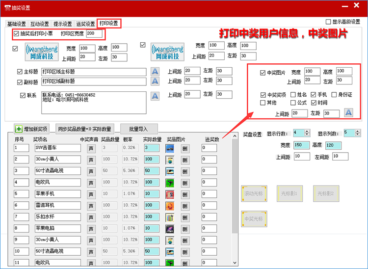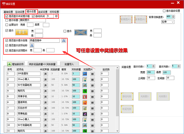 支持中奖中奖提示,可设置自动关闭提示信息;