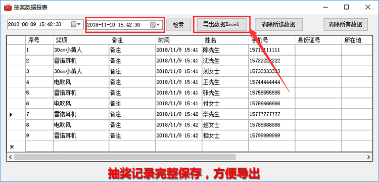 支持智能记忆功能,不怕断电、死机等,出现异常情况重新运行软件后可接着抽奖;