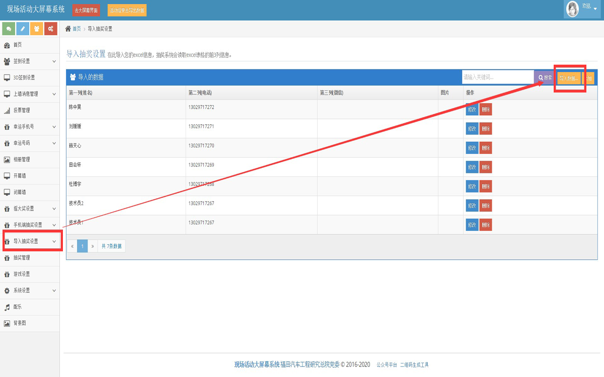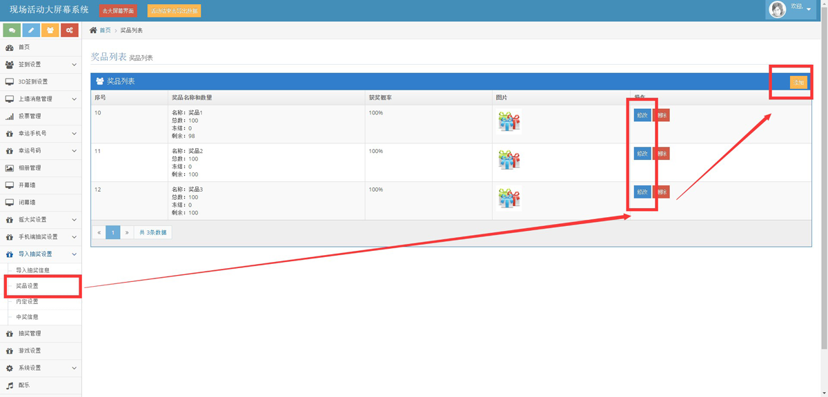 前台选择奖项和抽取的人数就可以直接抽奖啦!