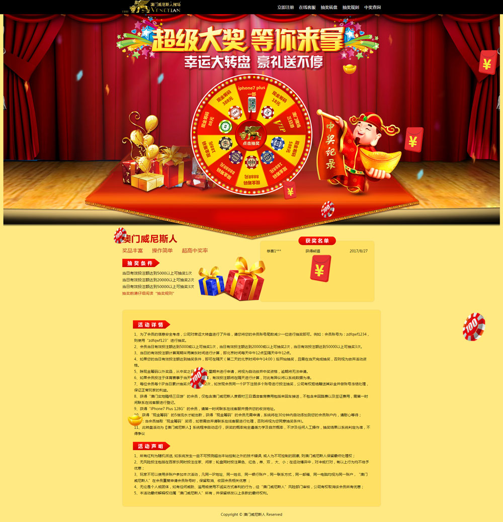 [ 威尼斯人转盘&红包雨活动源码 ]