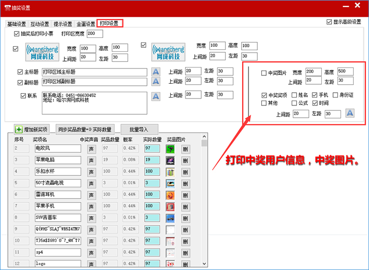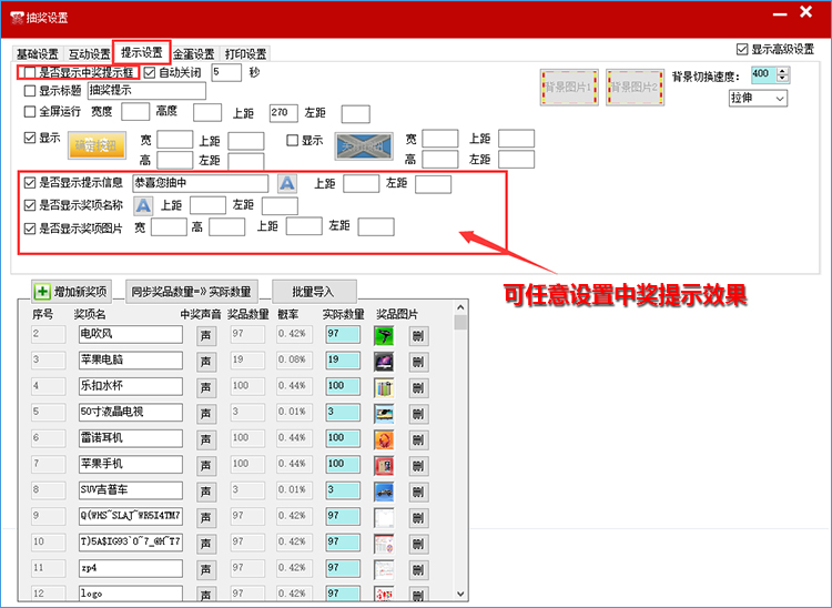 支持中奖中奖提示,可设置自动关闭提示信息;