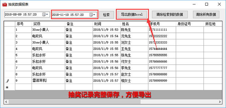 支持智能记忆功能,不怕断电、死机等,出现异常情况重新运行软件后可接着抽奖;